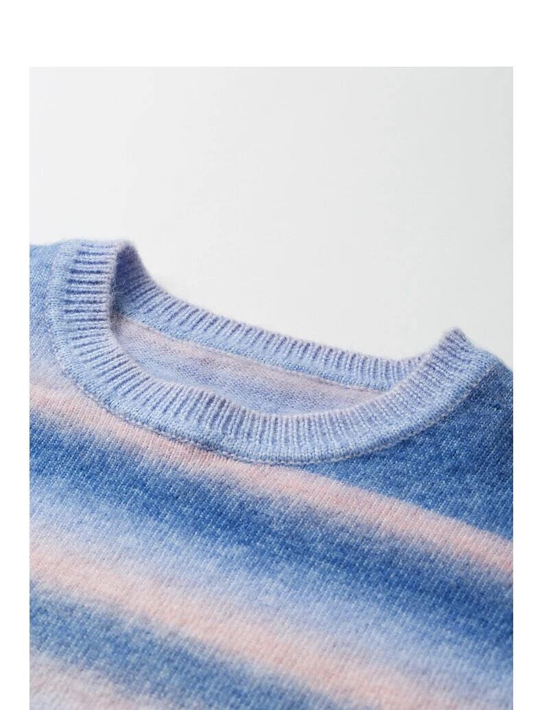 送料無料 アパレル Toyouth- women, ニットセーター, 梦のような紫のストライプ, グラデーションカラー、ラウンドネックプルオーバー、春のトップス、新しい、2022 AE332328878774462340333 | mihatudai(みはつばい)ネットショッピングならmihatudai