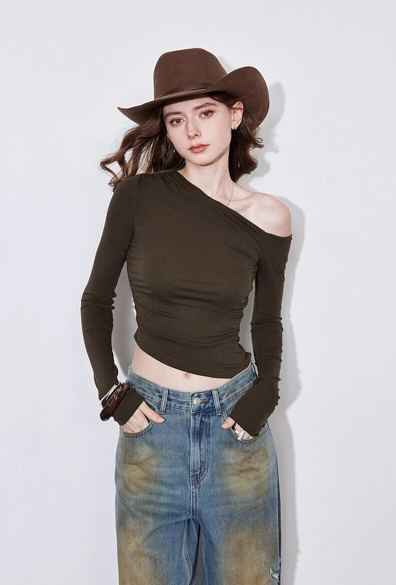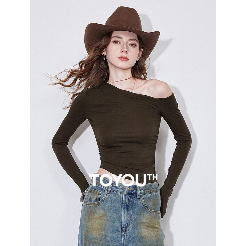 送料無料 アパレル Toyouth-長袖ワンショルダースリムフィットクロップトップ、セクシーTシャツ、新しい、春、2022年女性 AE332328878779030206754 | mihatudai(みはつばい)ネットショッピングならmihatudai