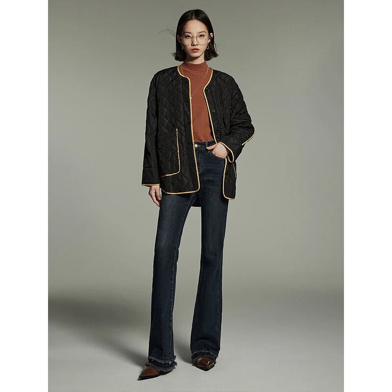 送料無料 アパレル Toyouth-レディース長袖ルーズ厚手のコート、コットンジャケット、ラウンドネック、無音ライン、ダイヤモンドパターン、热かいアウター、2023年秋 AE332328878765084900707 | mihatudai(みはつばい)ネットショッピングならmihatudai
