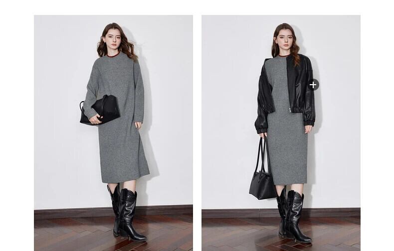 送料無料 アパレル Toyouth-ウールのストレートニットドレス、対光なカラー、エレガントなスタイルのスカート、グレー、秋冬、2022 AE332328878782995106681 | mihatudai(みはつばい)ネットショッピングならmihatudai