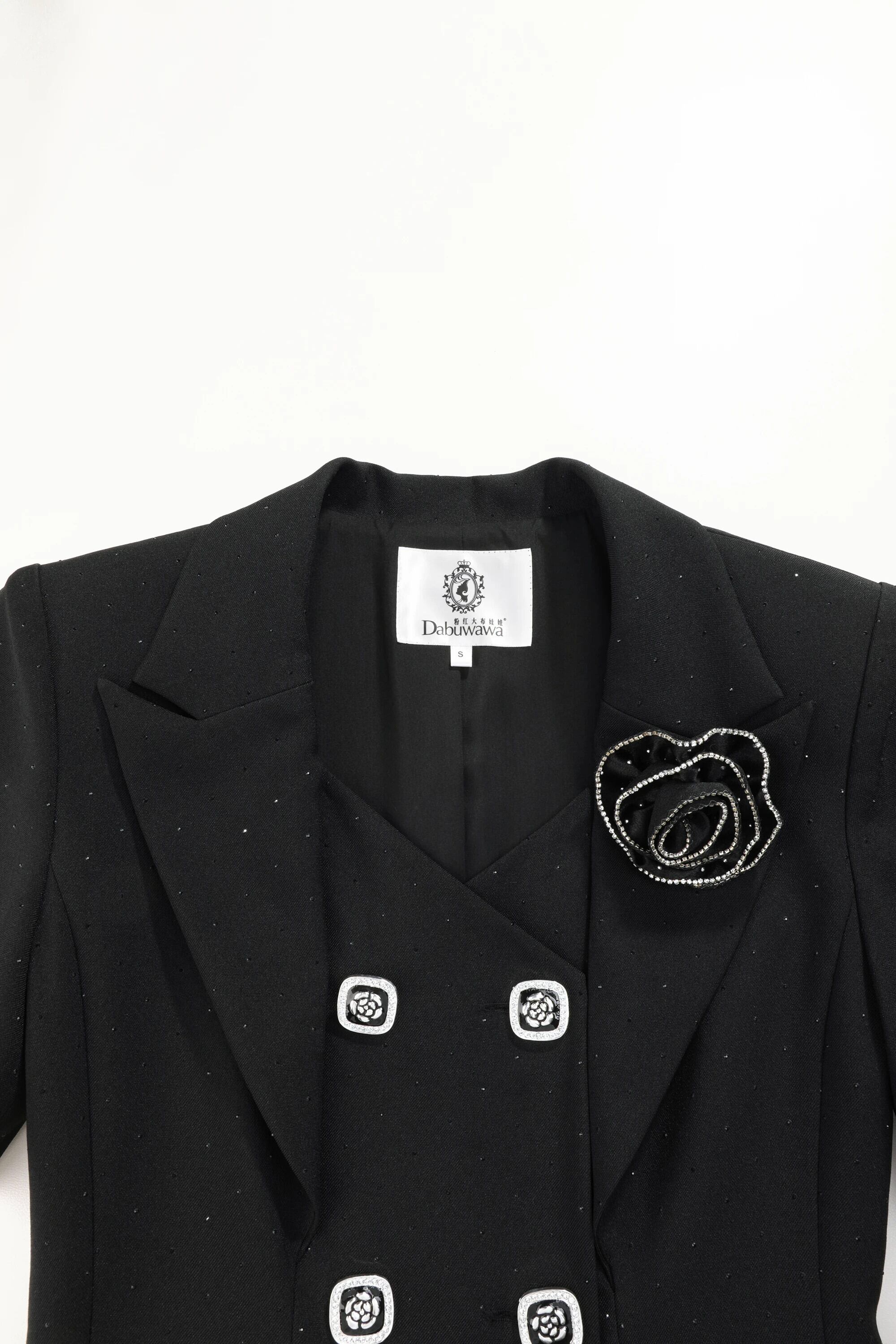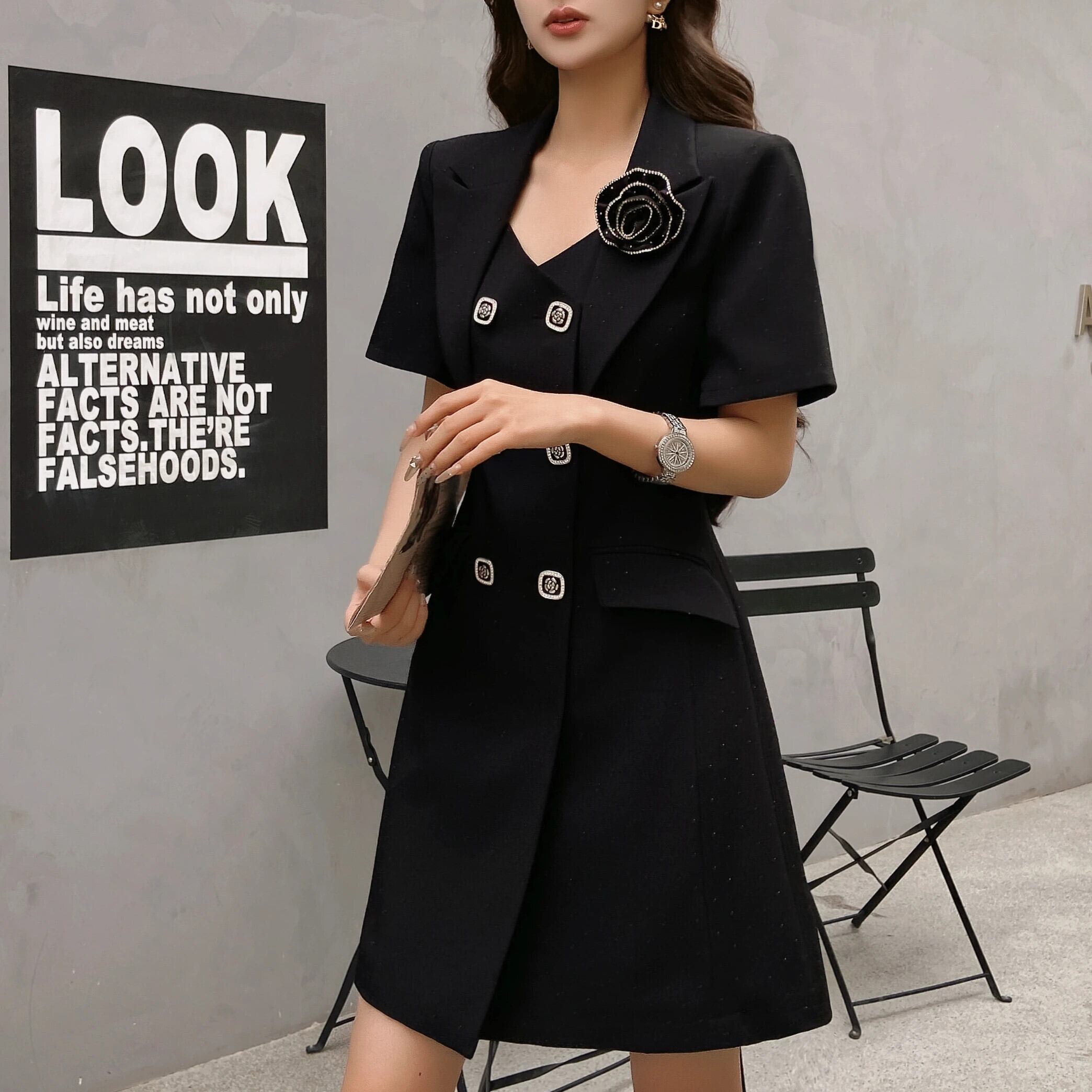 送料無料 アパレル ダブワワ - ダブルブレストドレス、ノッチ発行ダイヤモンド、エンパイアスカート、エレガントドレス、y2k、da1bdr017、パラムジャージのレディース使用 AE121255566806657817