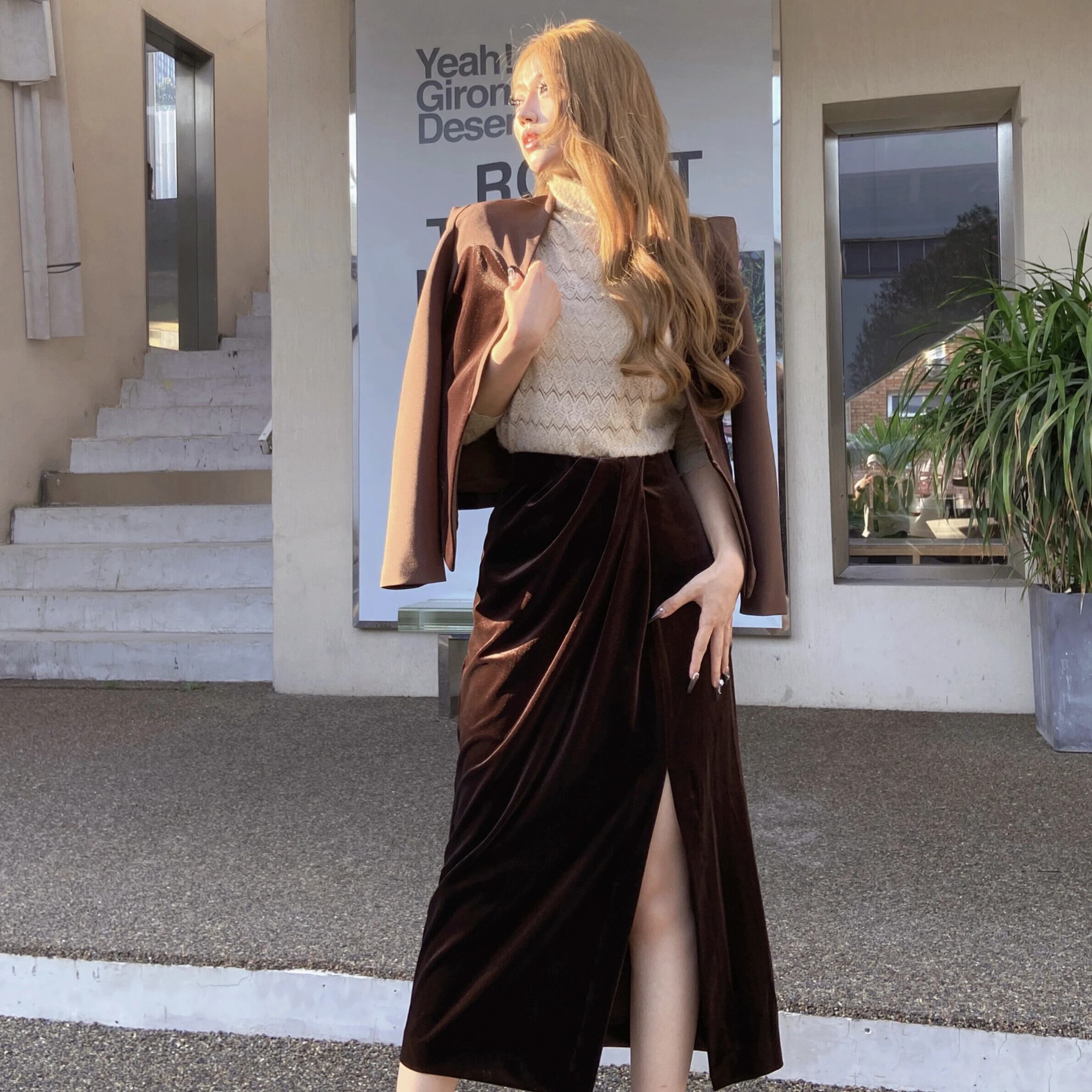 送料無料 アパレル Dabuwawa- のベルベットのサイドスカート、ヴィンテージ、新しいコレクション、プレッピースタイル、エンパイア、长いのレビュー、多くの衣、dm1csk018、2023 AE121255520036357399