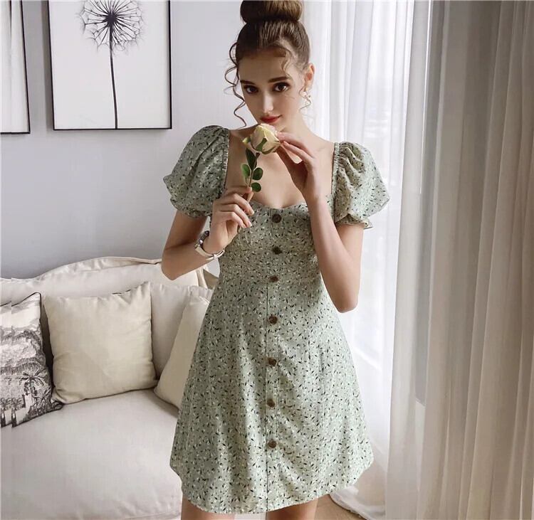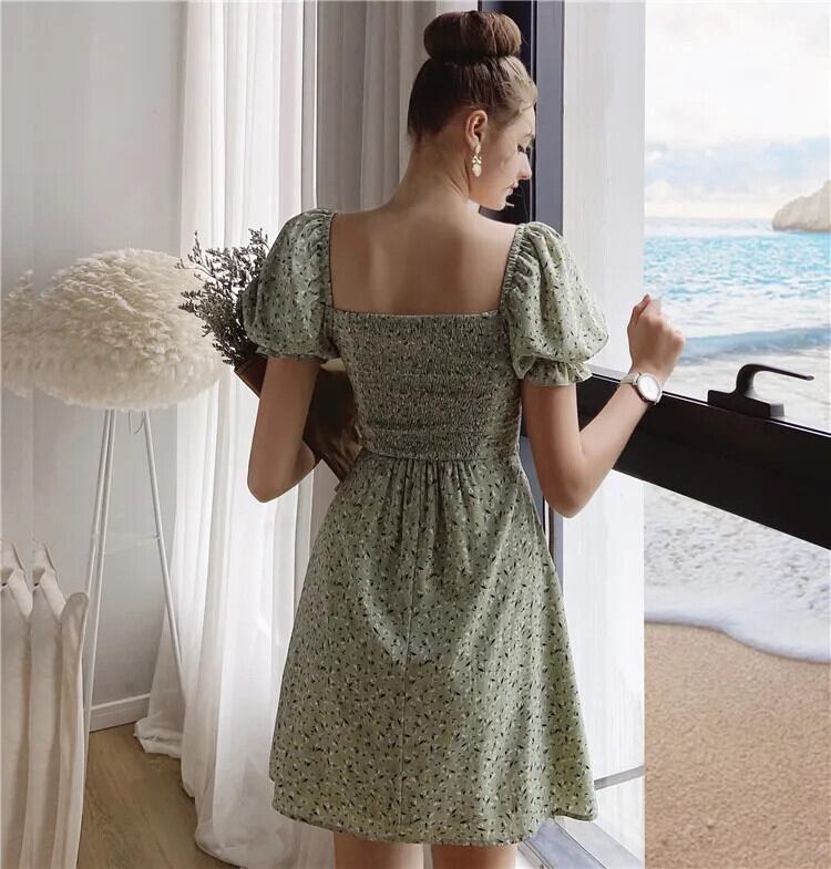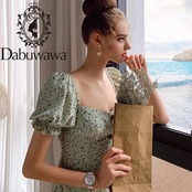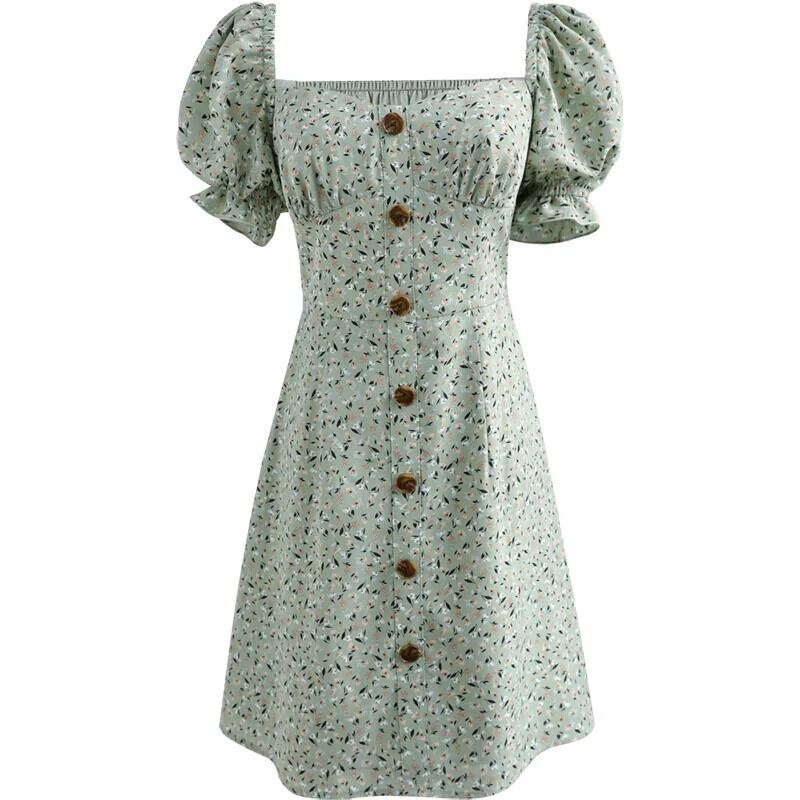 送料無料 アパレル ダブワワ限定 夏の自由奔放に生きるプリントドレス 女性 パフスリーブ スクエアネック シングルブレストアラインビーチドレス DO1BDR025 AE121255510284648889 | mihatudai(みはつばい)ネットショッピングならmihatudai
