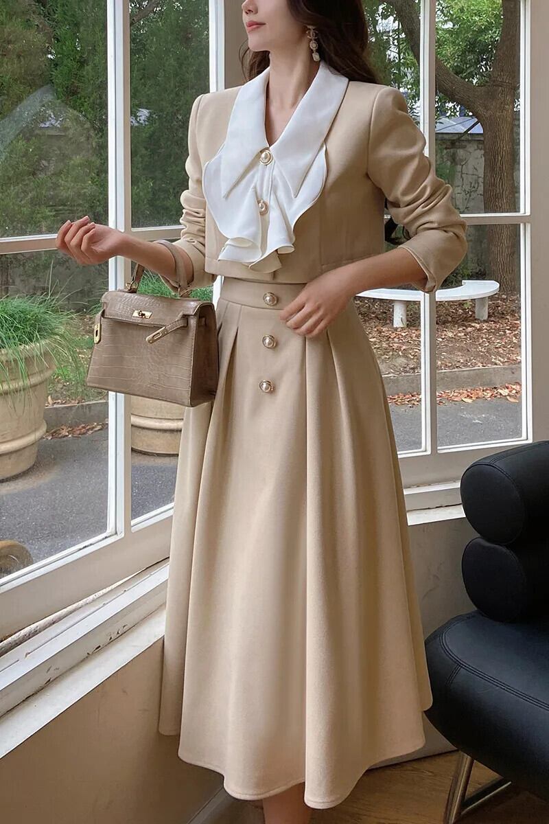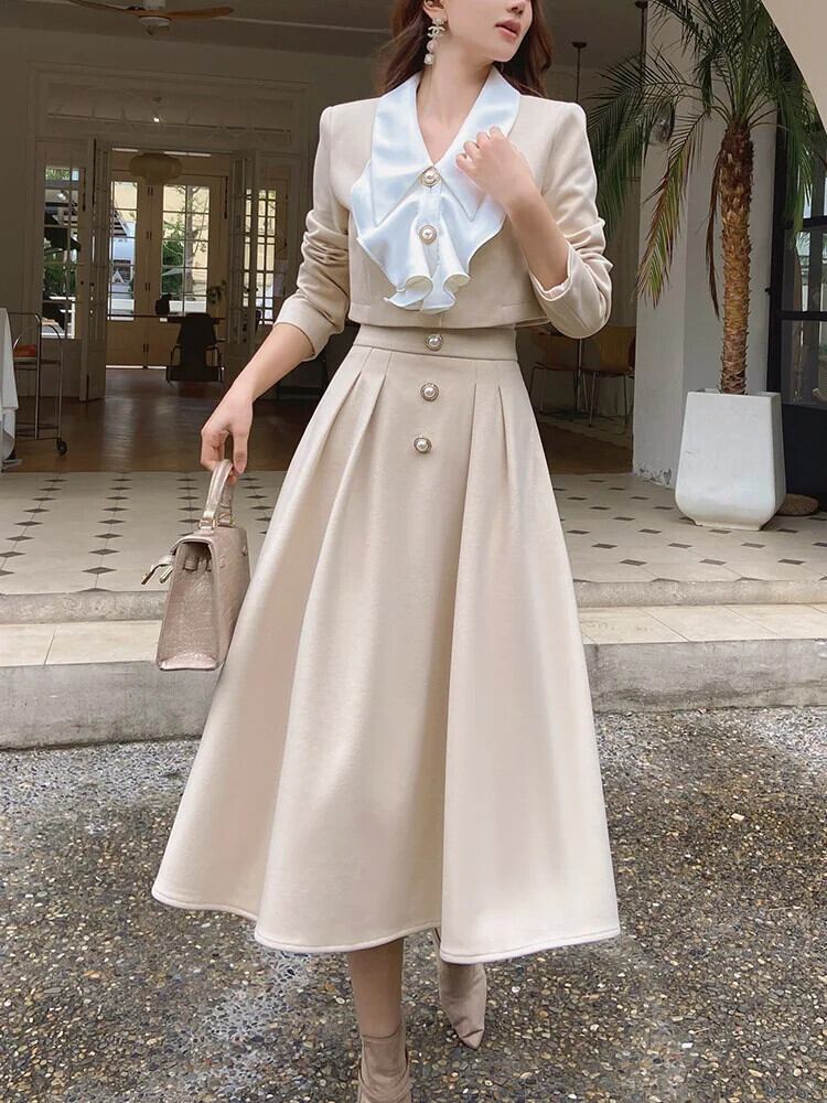 送料無料 アパレル Dabuwawa-Vネックショートコート、フラウンスフキヴィンテージエンウィメンズパイアエンパイアスタイルのスカート、UKスタイル、2ピース、dm1dse003 AE12125555837061063