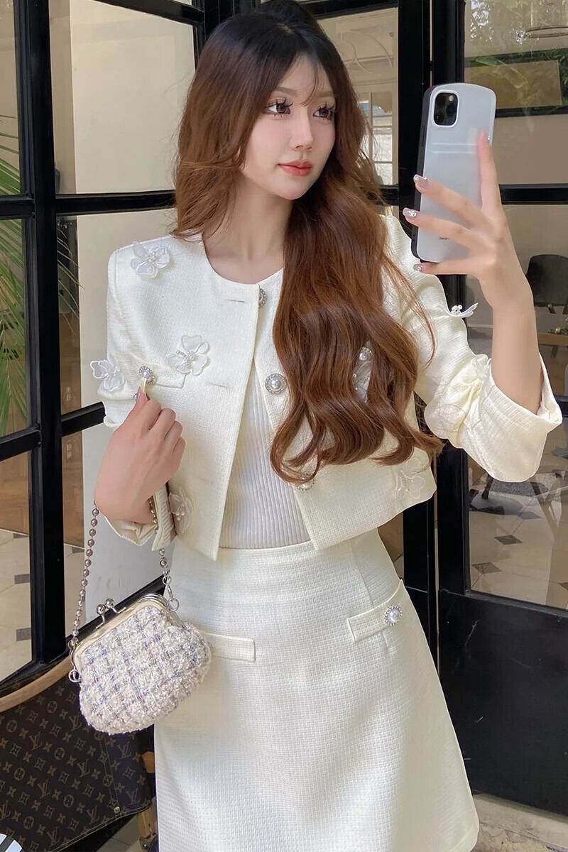 送料無料 アパレル だぶわわ-二次元装飾レディース、ショートコート、ツリー立体装飾、ヴィンテージポケット、Aラインミニスカート、秋2023、dm1cse010 AE121255586602829058