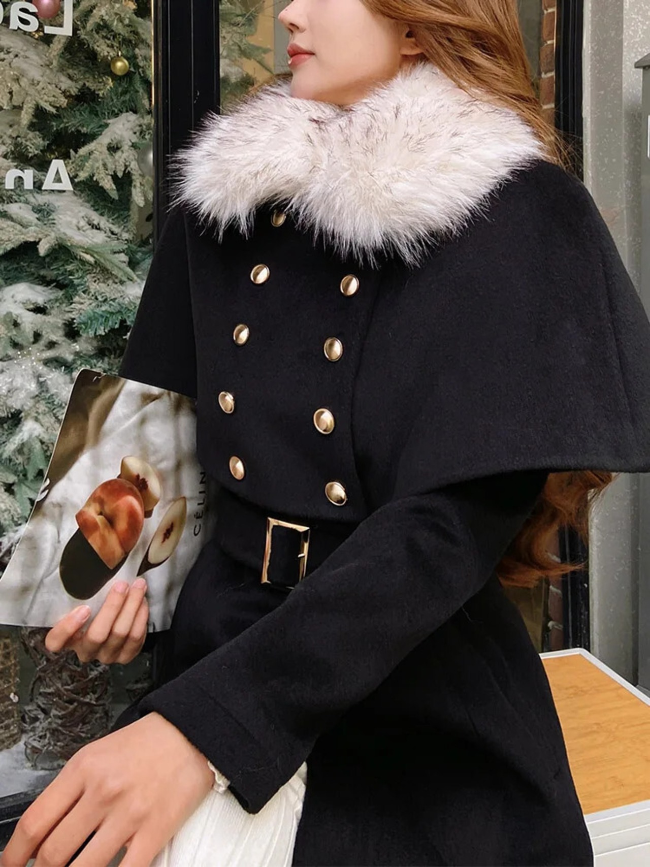 送料無料 アパレル Dabuwawa Pelz kragen doppelseitiger Woll-Lang mantel Frauen Neuankömmling Umhang ärmel Zweireiher Jacke milli tary dm1dco024 AE121255580326057080