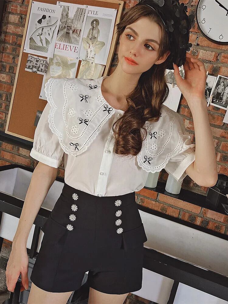 送料無料 アパレル Dabuwawa Frühling Sommer Weibliche トップス Zurück zu Schule Reine Baumwolle Bogen Puppe Kragen Chic Kurzarm シャツ 2023 DF1BST042 AE12125554907504977 | mihatudai(みはつばい)ネットショッピングならmihatudai