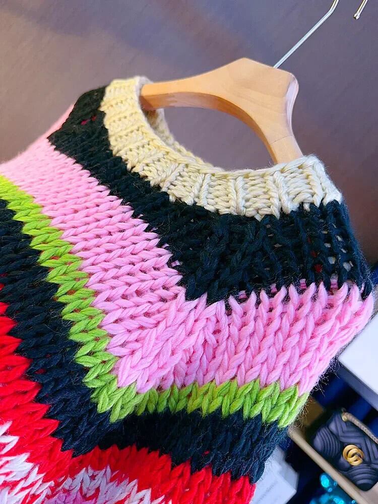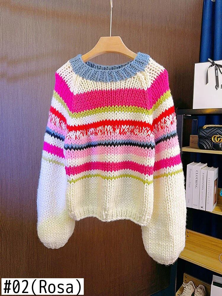 送料無料 アパレル Handgestrickter プルオーバー mit klobigen Streifen、mehrfarbig、langärmelig、süßer プルオーバー、プルオーバー、verdickt、Herbst/Winter、Damen-Strickwaren、Oberbekleidung ウィンター 冬物 AE12128877830314680 | mihatudai(みはつばい)ネットショッピングならmihatudai