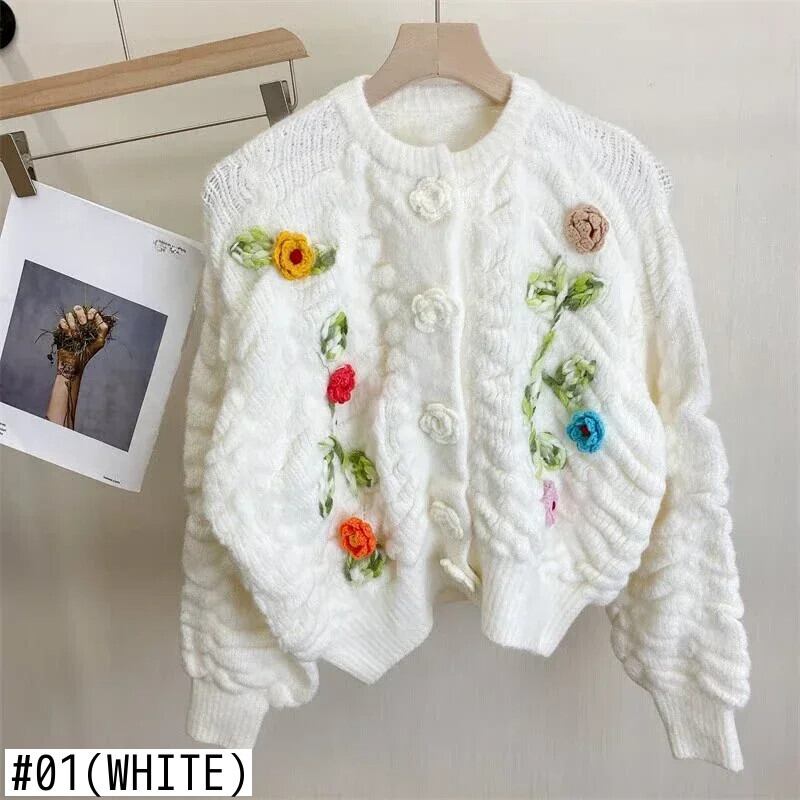 送料無料 アパレル Zierliche Stichblume Handstrick-Cardigan O-Ausschnitt bestickte Blumenknopf-Pulloverjacke Herbst/Winter Frau Strickwaren Kleidung カーディガン ウィンター 冬物 AE121288776394341318 | mihatudai(みはつばい)ネットショッピングならmihatudai