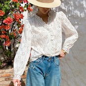送料無料 アパレル Öse Stickerei Knopfleiste vorne Bluse weiß V-Ausschnitt Puffärmel Damen Hemd aushöhlen Boho Outfits Urlaubskleidung AE12128876755028349 | mihatudai(みはつばい)ネットショッピングならmihatudai