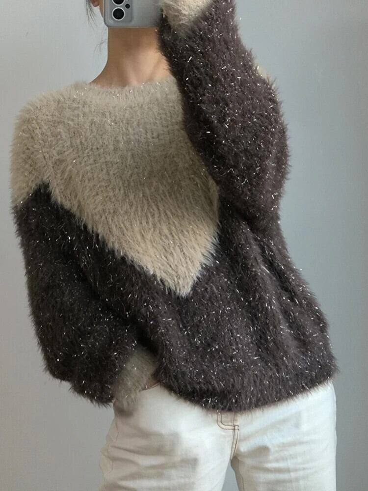 送料無料 アパレル Jiami Frauen gestrickt weichen プルオーバー hochwertige Pailletten flauschigen Fuzzy-Pullover braun/grau Vintage Strick プルオーバー Herbst/Winter Tops ウィンター 冬物 ビンテージ AE121288720266175958 | mihatudai(みはつばい)ネットショッピングならmihatudai