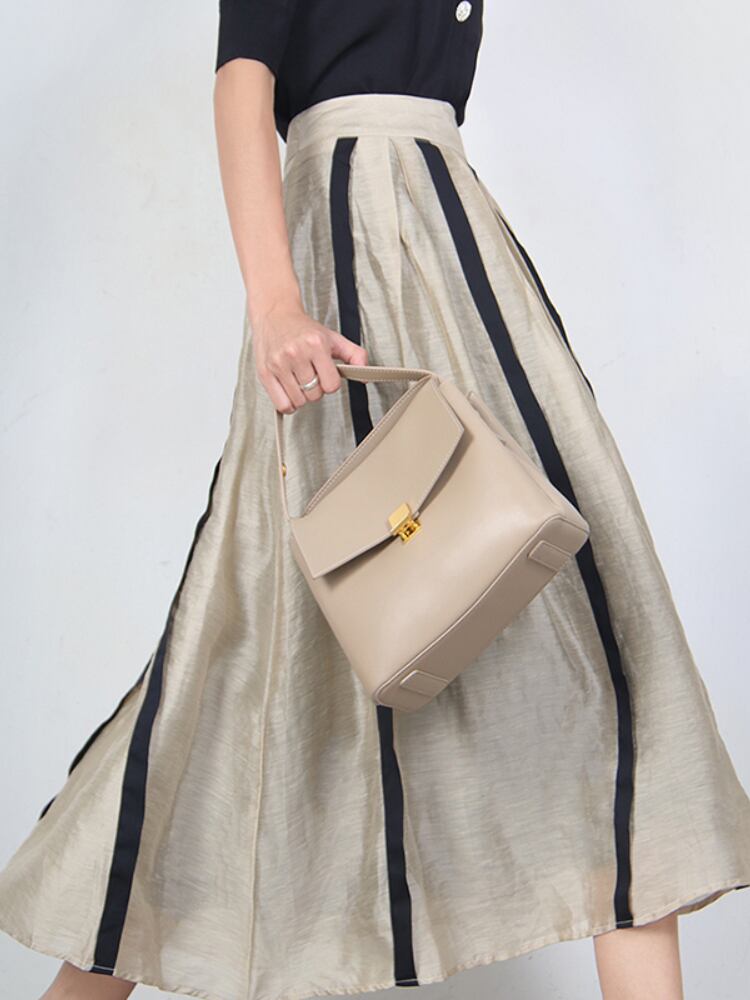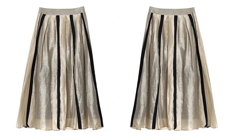 送料無料 アパレル Französischer Stil neu in Frauen Rockエレガント A-Linie plissiert gestreift Spleißen Hepburn Rock hochwertige Leinen gemischt Mitte der Wade AE121288744156657845 | mihatudai(みはつばい)ネットショッピングならmihatudai