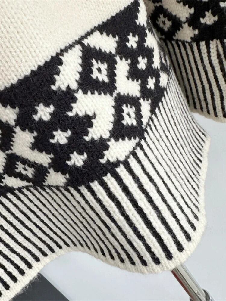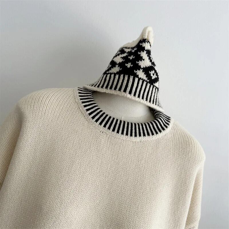 送料無料 アパレル Gemusterter Jacquard-Pullover mit Mütze、weiten Ärmeln、Rundhalspullover、Strickpullover、Herbst/Winter、Damen-Strickwaren、Oberbekleidung ウィンター 冬物 AE121288726355373055 | mihatudai(みはつばい)ネットショッピングならmihatudai