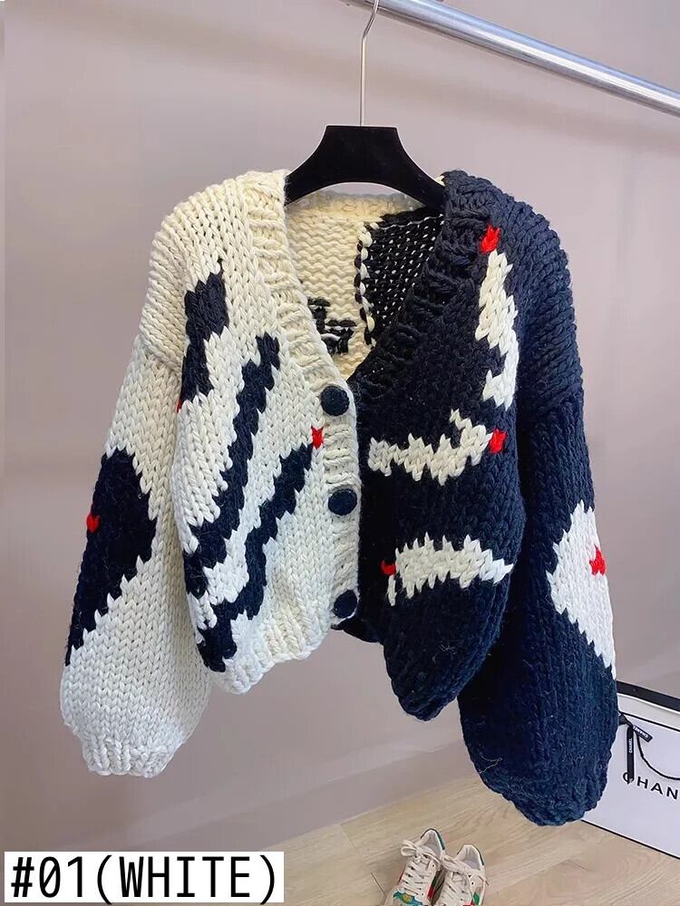 送料無料 アパレル Handgebreide Trui Vest Graffiti V-Hals Losse Gebreide Jas Met Lange Mouwen Dikke Gebreide Jas Herfst Winter Vrouw Kleding ウィンター 冬物 AE121288732666605263 | mihatudai(みはつばい)ネットショッピングならmihatudai