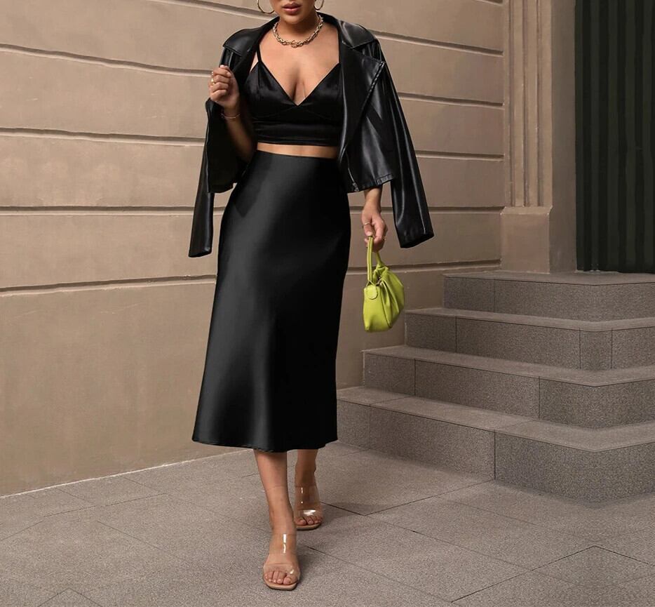 送料無料 アパレル Satijnen rok Hoog getailleerde effen kleur rokken Uitlopende zoom e dames bovenkleding AE12128878815613904 | mihatudai(みはつばい)ネットショッピングならmihatudai