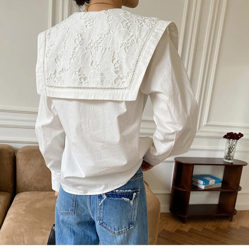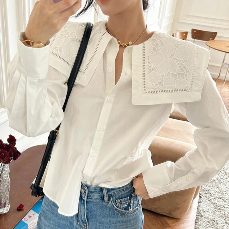 送料無料 アパレル Bestickter Kragen Langarm weiße Bluse 2024 Spting/Sommer Chic Retro Französisch Stil Frauen kleider レトロ AE121288785348397128 | mihatudai(みはつばい)ネットショッピングならmihatudai