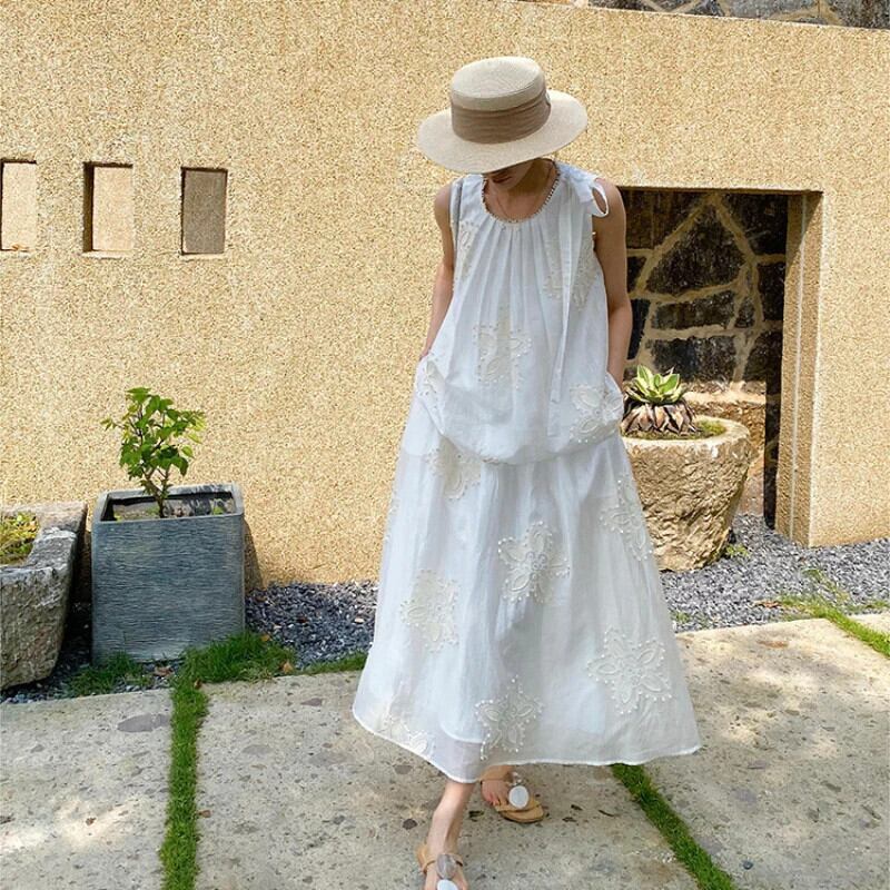 送料無料 アパレル Bloemenborduurwerk Rokset 2 Stuks O-Hals Kanten Vakantie Jurk Set Fairyland Stijl 2024 Zomer Nieuw In Dameskleding AE121288746571083475 | mihatudai(みはつばい)ネットショッピングならmihatudai