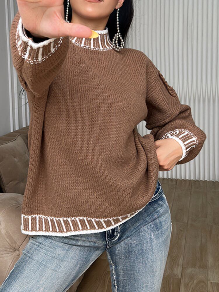 送料無料 アパレル カラーブロック Gestreepte Opstaande Kraag Trui Losse Pasvorm Lange Mouw Contrast Kabel Gebreide Herfst Dames Kniwear AE121288771041524533 | mihatudai(みはつばい)ネットショッピングならmihatudai