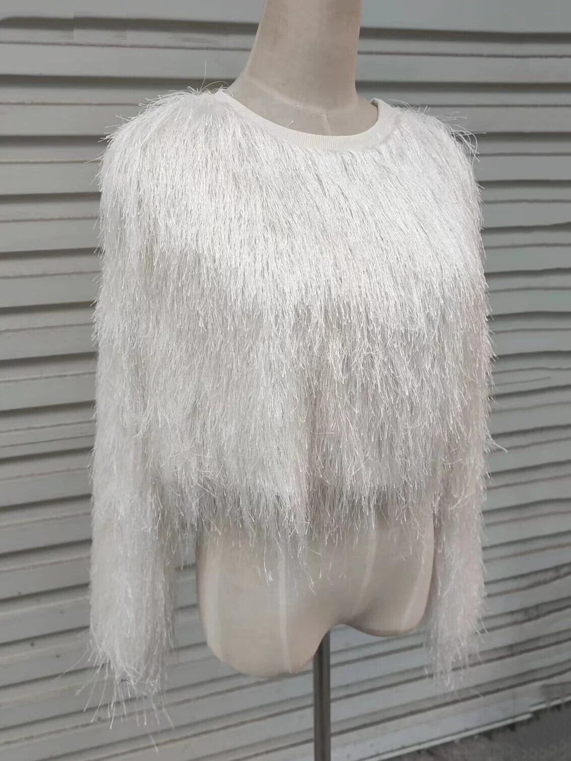 送料無料 アパレル Frühling Quaste Feder kurze Strickpullover 00er 90er Y2k kurze トップス プルオーバー einfarbig Rundhalsausschnitt Strickpullover Schwarz Weiß AE121288781972595269 | mihatudai(みはつばい)ネットショッピングならmihatudai