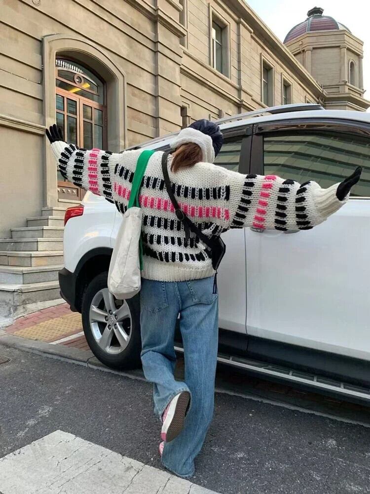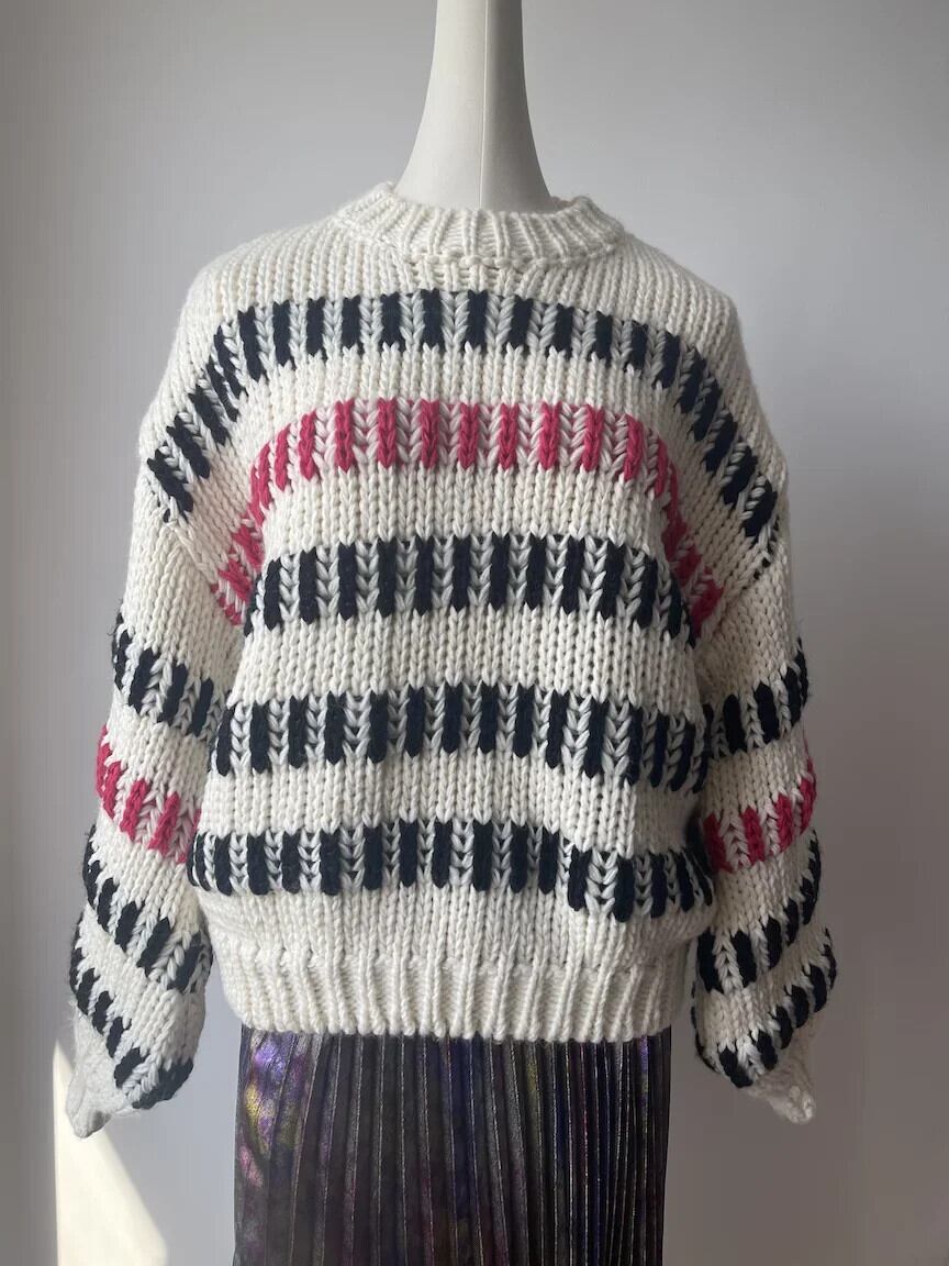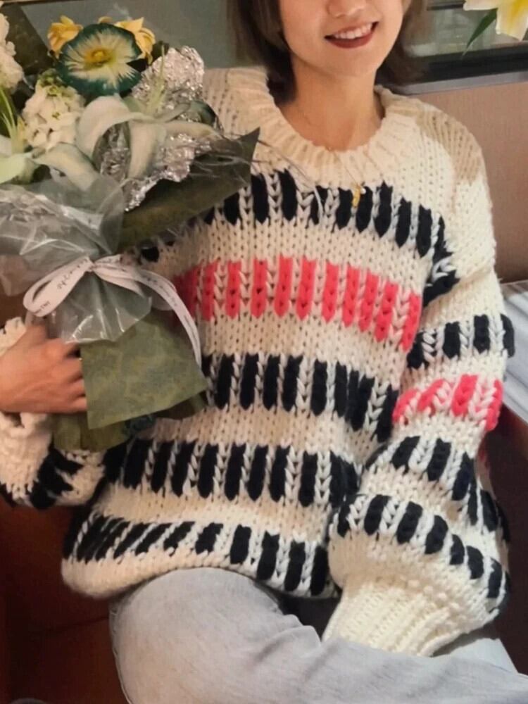 送料無料 アパレル Hochwertiger、gestreifter Strickpullover mit Farbblock-Motiv für Damen、mehrfarbig、Rundhalsausschnitt、grober プルオーバー、Strickpullover、トップ、Modetrends 2025、 AE121288785625660755 | mihatudai(みはつばい)ネットショッピングならmihatudai