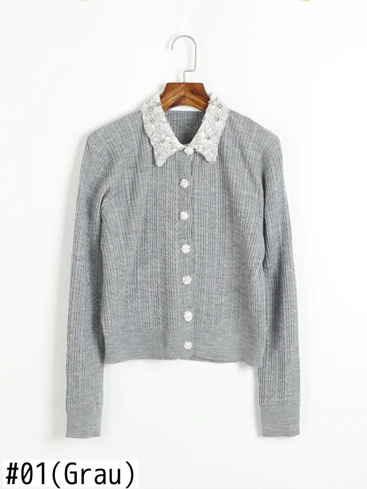 送料無料 アパレル Frühling Verzierte-kragen Strickjacke Zopfmuster Tops Nische Pailletten Perlen Revers Großhandel Frauen Strickwaren Kleidung AE121288738785581468 | mihatudai(みはつばい)ネットショッピングならmihatudai