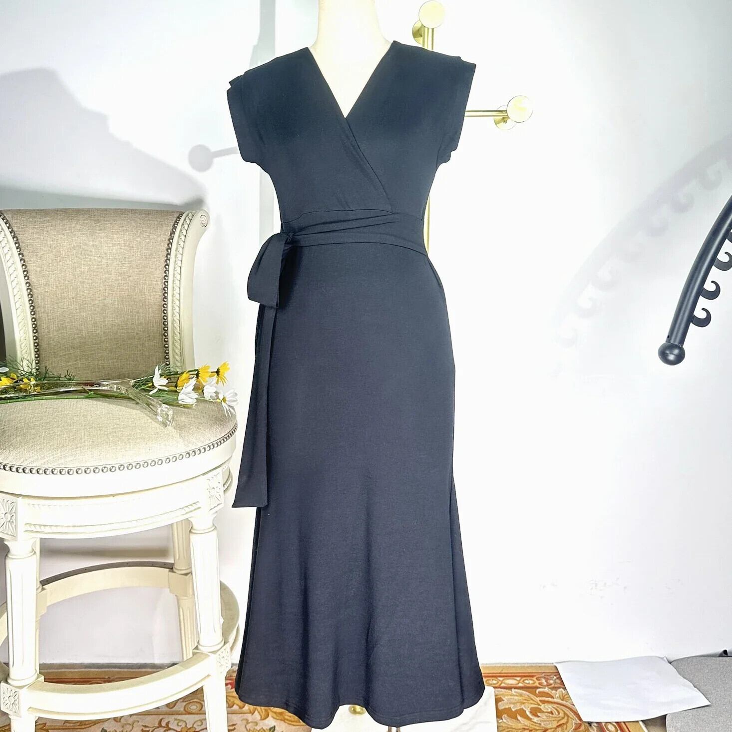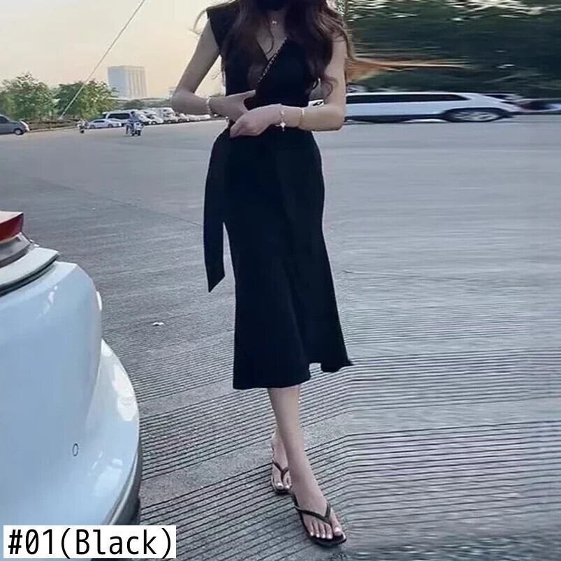 送料無料 アパレル V-Ausschnitt vorne、einfarbig、A-Linie、ärmelloses Sommerkleid、Bürodame、einpeilig、lässige Damenbekleidung によるシュヴァルツェス ヴィッケルクライド AE121288780871502086