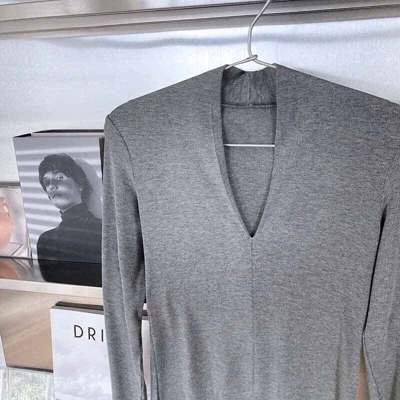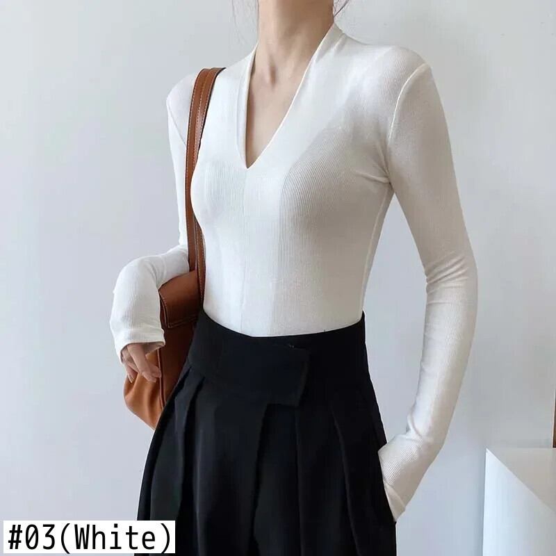 送料無料 アパレル ミニマリスト、シック T シャツ mit V-Ausschnitt、einfarbig、Frühling/Herbst-Pullover、lange Ärmel、schmale Pm、Hemdbluse、Damenbekleidung Tシャツ AE121288757505839125