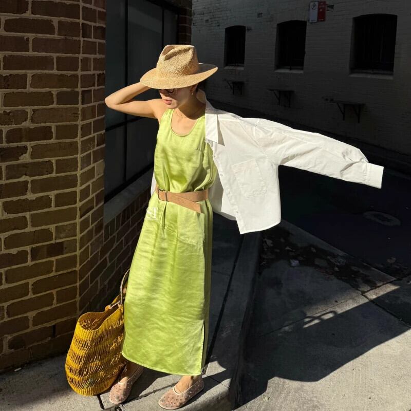 送料無料 アパレル es Satin-Midikleid im französischen Stil mit Slip-Seite für Damen、2025、フリューリング、ゾンマー、ストリート、レッシグ、ウルラウブ、ロッカー クライダー サテン AE121288786333137297